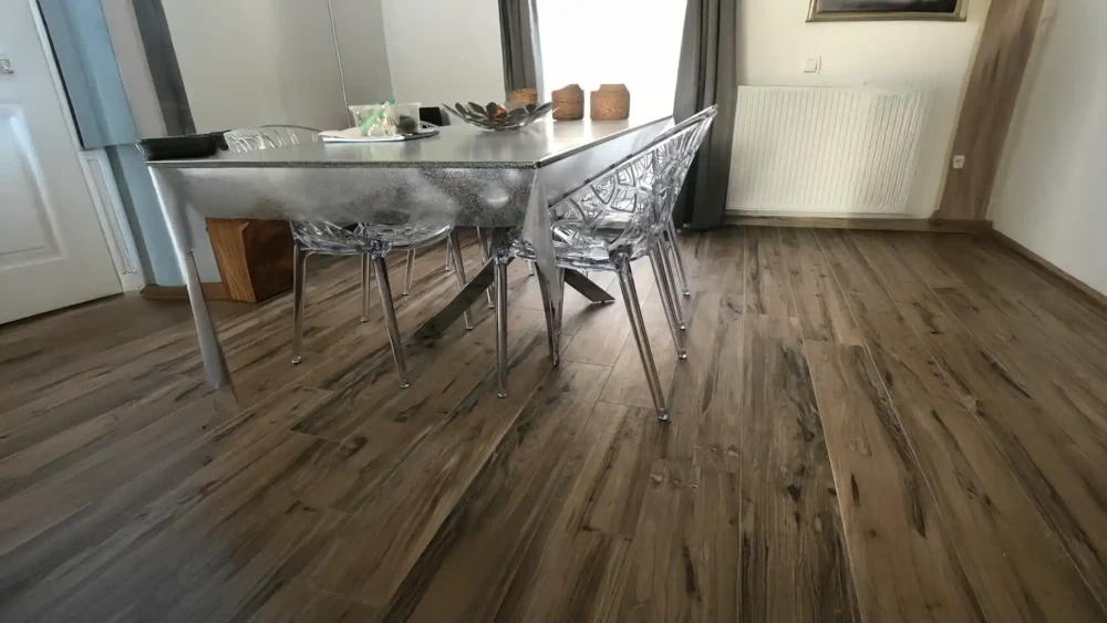 Installation de carreaux qui reproduisent l'aspect du bois, de la pierre ou du béton pour un style authentique sans les inconvénients.